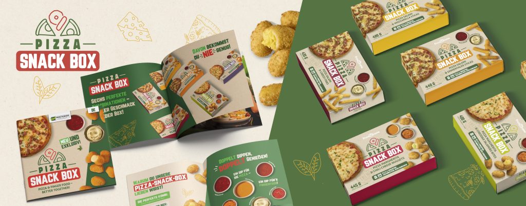 Die Vielfalt der Produkte spiegelt sich auch in der Gestaltung wider. Vom Markenauftritt der Food Group über Messestände und Social Media bis hin zu Produktverpackungen und Verkaufsunterlagen wie Booklets – jedes Design erhält die passende Optik für einen frischen, modernen Look.
